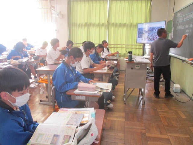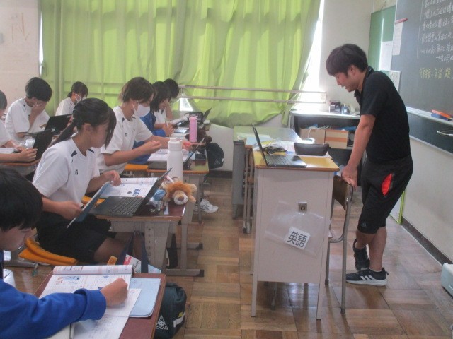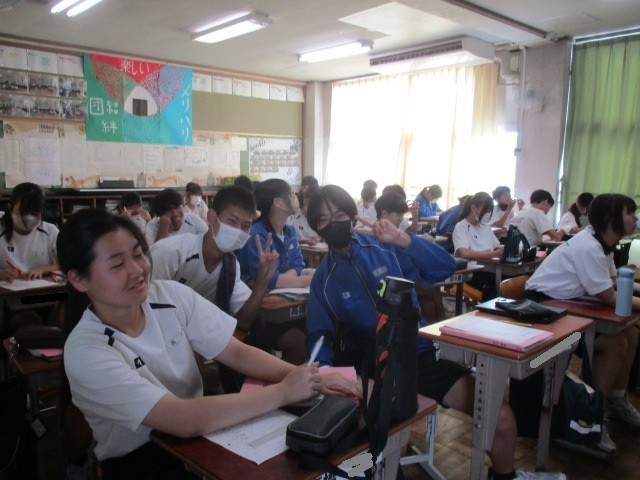 1B英語は、ALTのハウリイーンが見えて、スクリーンの挿絵から、英文(単語)を考えました。