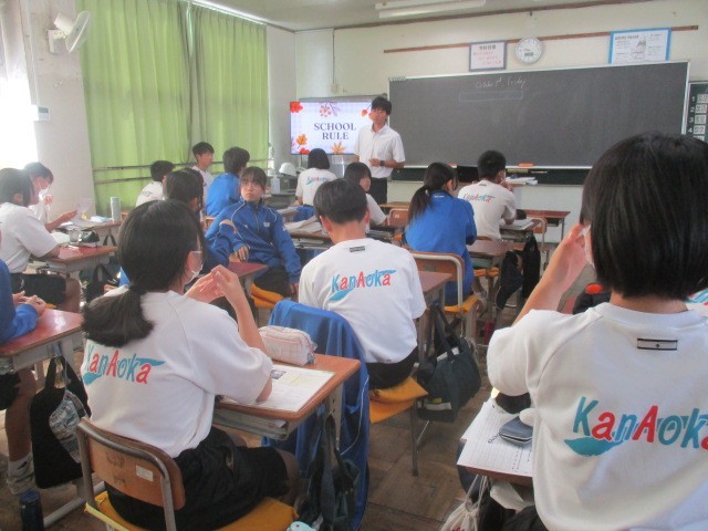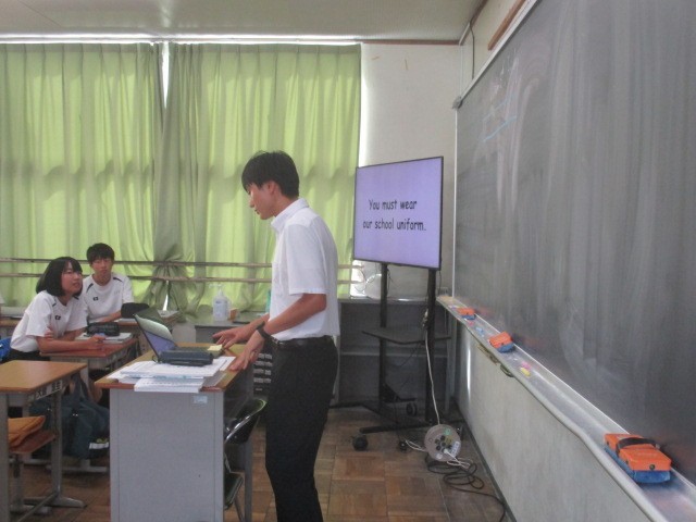 2B英語では、must や have to (~しなければならない)について、学校のルールなどをもとに考えました。