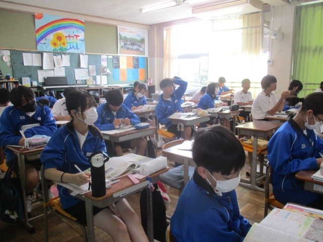 2D学活も「より良いふもと祭にするために」をテーマとして、付箋を使ったKJ法を活用し、皆がどのように考えているかを把握しながら、クラスとして、個人としてどのように向かっていくかを考えました。良い意見がたくさん出ました。これからが楽しみです。