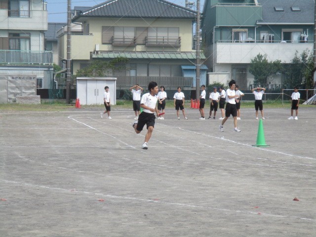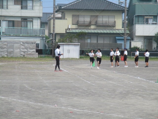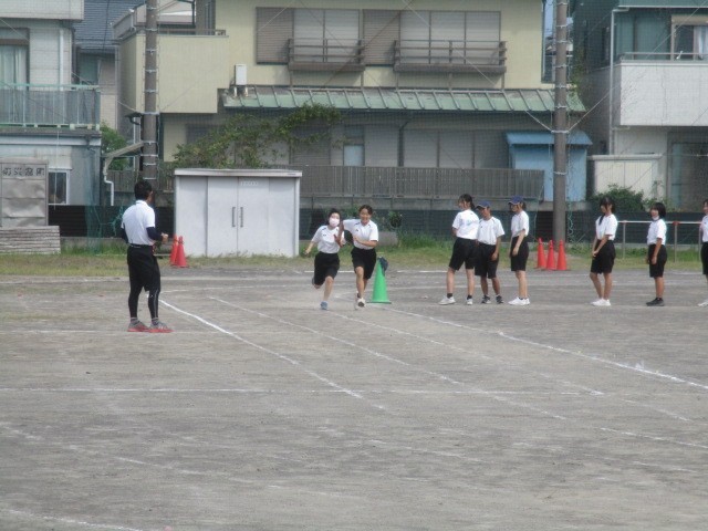 明日が雨の予報のため、計画されていた生徒会種目練習を早めて1時間目に行いました。蒸し暑さはありますが、曇りで風も出て、過ごしやすい環境でした。