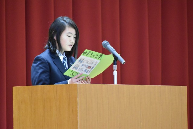 皆さん、具体的な例をあげて、力強い決意を述べてくれました。じっと仲間のスピーチを真剣に聞く皆さんの姿にも感動しました。