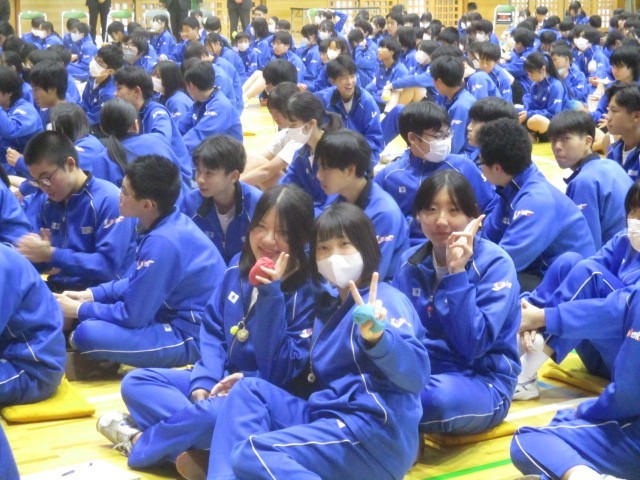 閉会式、結果発表、表彰、実行委員長、生徒会長の言葉、講評の様子です。生徒の皆さんの、勝った喜びや仲間をたたえる姿が印象的でした。スローガンを達成できた、すばらしい「ふもと祭」となりました。来賓の皆様、PTA役員、保護者の皆様、地域の皆様、ありがとうございました。