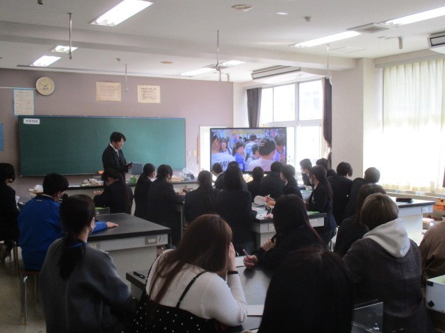 2年生は45時間目に薬学講座をやりました。保健委員の進行のもと、学校薬剤師の先生に、お酒について講話をしていただきました。