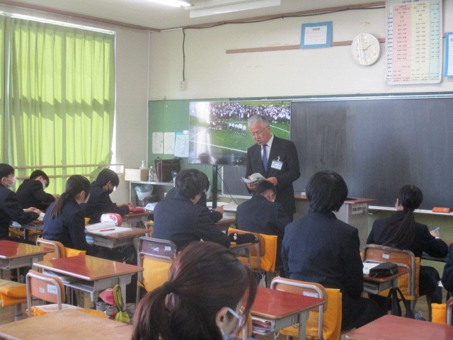 3年生は、平和学習として、太平洋戦争や現在の紛争について調べてきましたが、退職女性教職員の会の皆様に来ていただき、「戦時体験を語る」出前授業にて「沼津空襲」をはじめとする戦時体験を聞く時間をいただきました。進路決定を間近に控える中学生が、社会の一員として、当たり前としがちな今の平和について、将来を見据え深く考える機会をもつことができました。ありがとうございました。+1