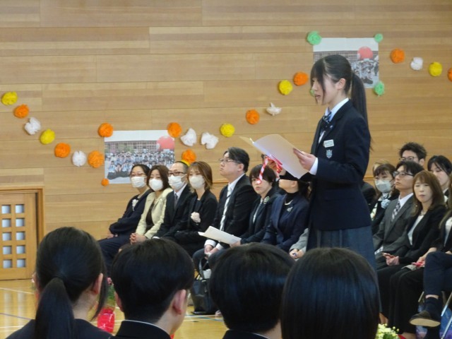 校長式辞、送辞、答辞の場面です。