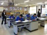 6時間目はE組です。 最初に車椅子の説明を聞き、2人1組で扱ってみます。 後ろで...