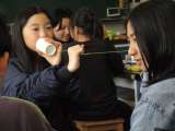 糸電話を自分たちで作ります。 できた人たちから実際に使ってみます。 びっくりする...
