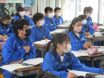 明日から2日間、県内私立高校の入試が行われます。3年生が体育館に集まり、前日の事前指導を受けています。緊張することもあるかもしれませんが、プラスイメージを持ってがんばってほしいと思います。