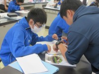 1C理科では、「花とは何か」を学習課題として、ルーペを使って、ふじの花のつくりを...
