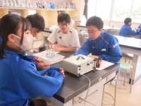 2D理科では、電気による水の分解を学習しました。下奥にある電極をつけるところです...