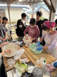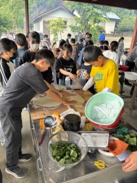 地元の方にほうとうの作り方を教えてもらいながら、夕飯を作りました。