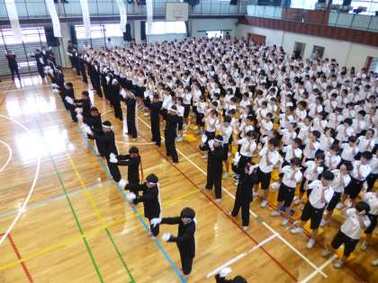 全校生徒が一致団結して、すばらしい壮行会をつくりあげました。