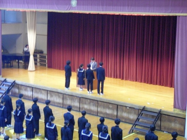 本日の朝礼では、学級役員任命が行われました。特別活動支援部長の先生より一人一人名前が呼ばれ、代表で各学年委員長が校長より任命を受けました。先週は生徒会本部役員及び専門委員長が任命されましたので、各種リーダーがすべて任命を受けたことになります。大岡中をよりよき方向へ導いていって欲しいと思います。頑張れ!大岡中のリーダーたち!
