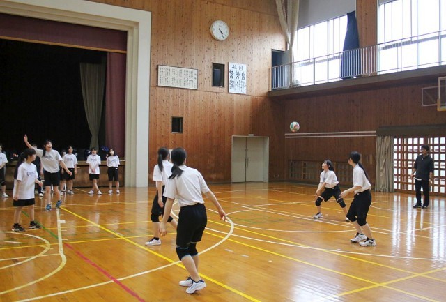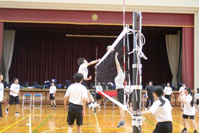 今年度初めての部活動がスタートしました。インドアの部活動の様子です。「バスケット部」、「バレー部」、「卓球部」です。みんな生き生きと部活動に取り組んでいます。