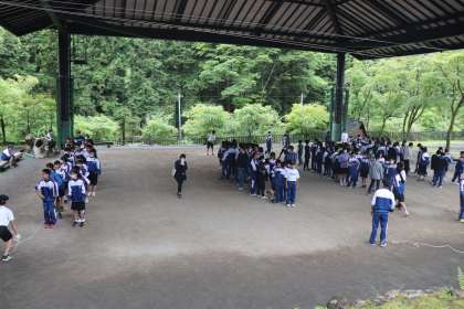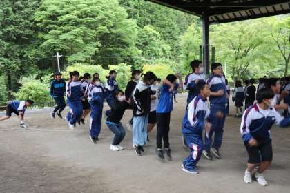 学年レクリエーションの様子です。レク第3弾は長縄です。初めて全員で跳ぶ長縄に挑戦ですが、学級で話し合い、作戦を練っていきました。