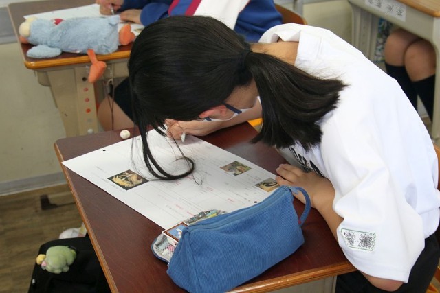 卒業した先輩方に来ていただき、中学生時代の経験や将来の夢について語っていただいています。切実感のあるお話を夢中で聞いています。