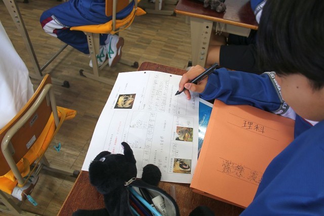 1年生の理科では、「肉食動物?草食動物?どっちでしょうか。」を学習問題として授業が進められています。様々な動物の歯形にも注目しながら、肉食・草食・雑食に分けていました。みんな集中して授業に取り組むことができていました。