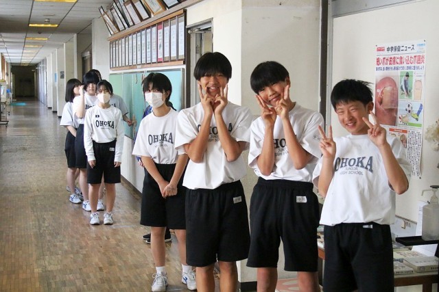 本日は、3年生とFG組、2年AB組が歯科検診を行いました。廊下ではみんな静かに待機することができていたので写真を撮ろうとしたところ、3年生がいい笑顔でポーズをとってくれました。