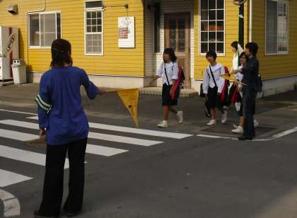 隔週月曜日の7:15〜7:45まで、正門と学校西側の中道の交差点の2カ所で行われます。次回は7月2日の予定です。