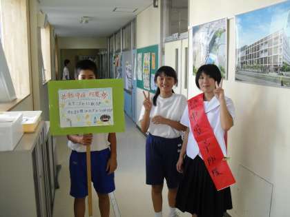 健康委員が「熱中症予防隊」を結成し、昼休みに校内を歩いて呼びかけを行っています。熱中症予防の啓発活動に取り組んでいます。