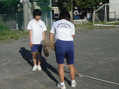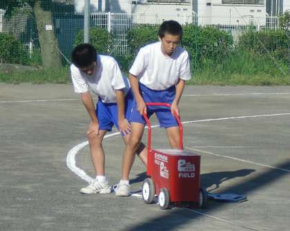黒潮祭に向けて、体育の部推進委員会は、グラウンドのライン引きを行いました。