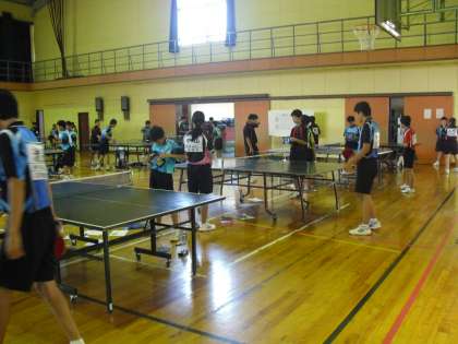 卓球部は、市内2校を招き練習試合を行っています。他校の選手から多くのことを学ぶことができ、大変有意義な一日となることでしょう。