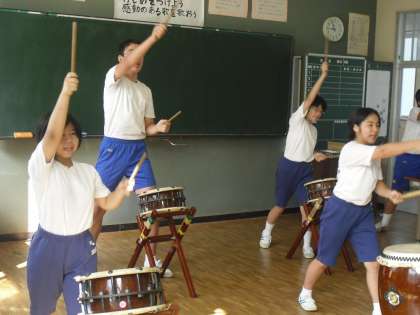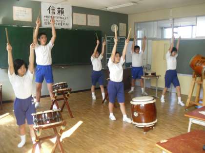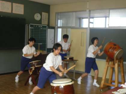 連休二日目、文化芸術部が黒潮祭に向けて練習をしています。一人一人が自信をもって太鼓をたたいています。