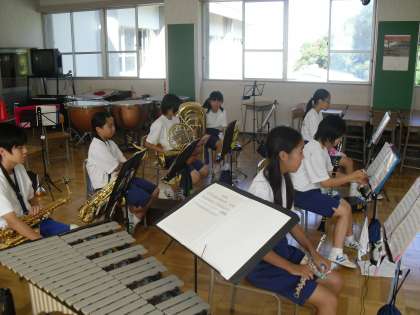 吹奏楽部は、黒潮祭で演奏する曲を何度も練習し、精度を高めています。全部員が課題をもって練習しています。