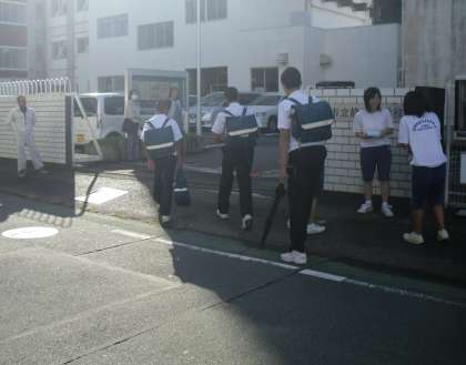 あいさつ運動は、月曜日の7:15〜7:45まで、正門と学校西側の中道の交差点の2カ所で行われます。今日は2学期3度目のあいさつ運動でした。次回は10月2日(火)の予定です。