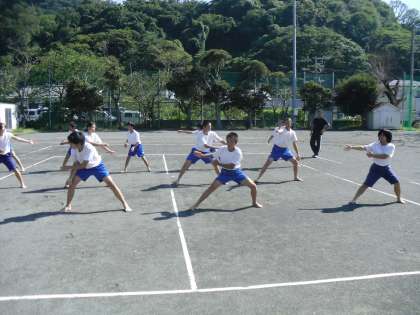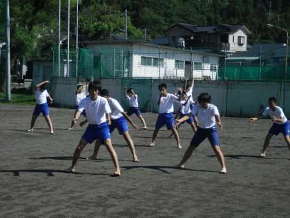 2年生は、黒潮祭に向けて、グラウンドで集団演技「ソーラン節」を行っていました。黒潮祭まであと10日を切り、練習も熱気を帯びています。