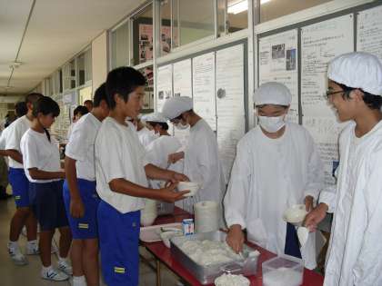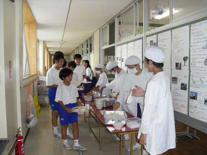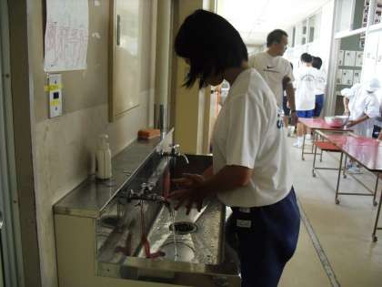 1Aの給食配膳の様子、手洗いの様子を撮影しました。
