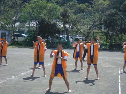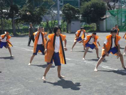 2年生は、クラスごとソーラン節の練習をしていました。今日は、静浦カラーのオレンジ色法被を身にまとい、力強く演技していました。