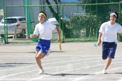 午前中の最後のプログラム「縦割り対抗リレー」です。生徒一人一人が最後まであきらめずに走りました。