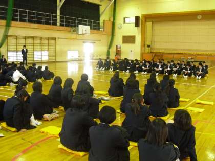 本日、3年生を送る会が盛大に開催されました。吹奏楽部の演奏で生徒は入場しました。入場の際には在校生から大きな拍手が送られました。