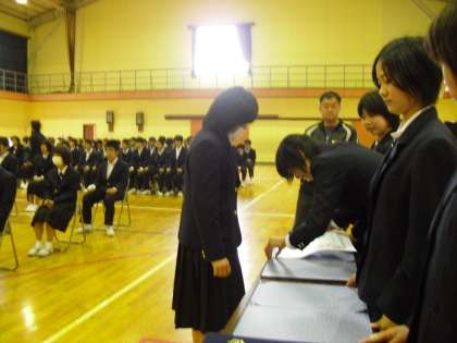 第2・3校時に卒業式総練習を行いました。全校生徒が真剣な表情で練習に臨んでいました。