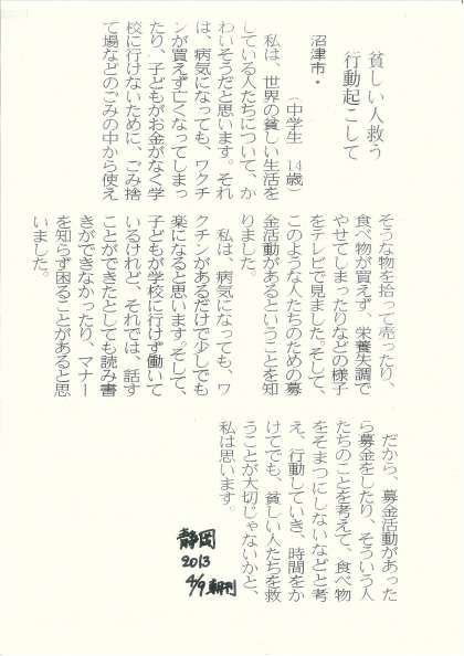 4月9日の静岡新聞読者のページ「ひろば」の欄に、本校生徒が言語科「読解の時間」に書いた文章が掲載されました。