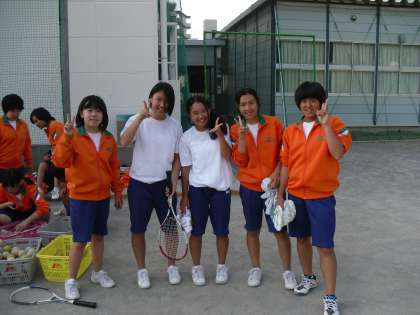 ソフトテニス部は、1年生が11名加入しました。先輩たちが手本を示しています。