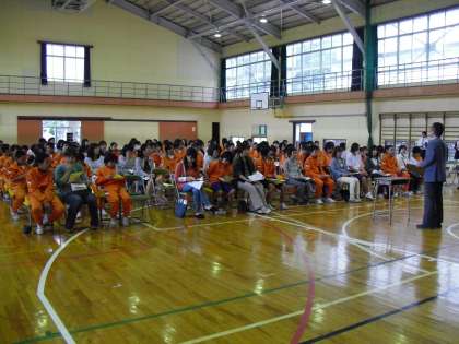 本日、自然教室説明会を開催しました。1・2年の生徒も一緒に日程や健康面、注意事項等を確認しました。