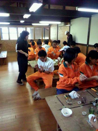 1・2年生は、ダラスビレッジで体験活動をしています。ワイヤークラフトや吹きガラスづくりに挑戦しています。