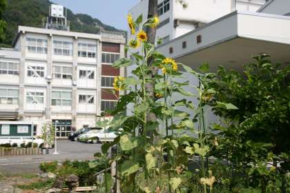 校内を見渡すと文化芸術部や用務員が世話しているひまわりがきれいに咲いています。