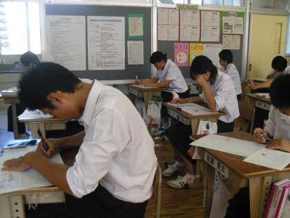 本日、中間テストを行いました。生徒はこれまで勉強してきたことを思い出しながら、問題に取り組みました。
