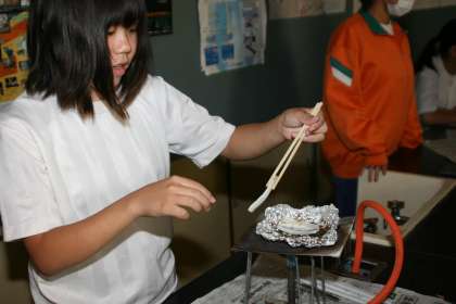 イカの解剖後には、ガスバーナーでイカを焼き、みんなでおいしくいただきました。