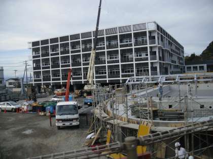 1年生は、午後行われた学校保健委員会に出席するために静浦地区センターに向かい、国道414号線を南に向かって歩きました。静浦小校舎近くになると、全貌が現れた新校舎があり、それを眺めながら、「すごいな。」「大きいな。」と口々に感想を言っておりました。新校舎も今月末完成です。遠くに白雪の富士も望むことができました。