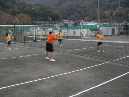 ソフトテニス部は、ペアになってラリー練習を行っています。