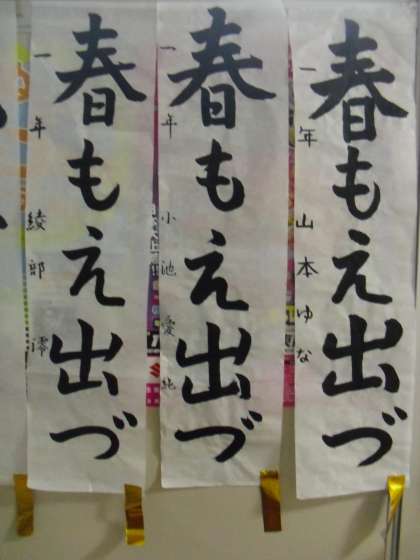 校内書き初め展の金賞作品を職員室前に掲示してあります。来校の際にご覧ください。