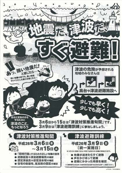 来週9日(日)に実施される津波避難訓練のチラシを生徒に配布しました。来週の津波避難訓練(静浦全地区)に参加しましょう。