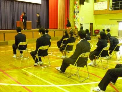 3年生は、卒業式の練習を行いました。今日は、挨拶、入退場の仕方、卒業証書授与の仕方等を確認しました。