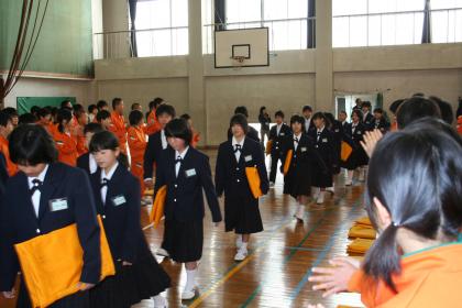 本日、生徒会主催で「新入生を迎える会」が開催されました。吹奏楽部の演奏の中、新入生は緊張した面持ちで入場しました。