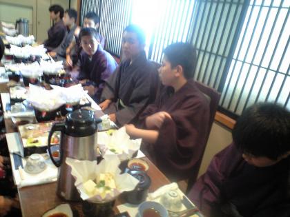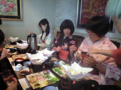 日本文化のスタートは、着付け体験です。着物姿で、食事を済ませ、嵐山に向かいます。