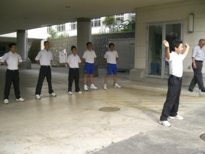 中体連が近づいてきました。中体連前に壮行会を行いますが、今朝は応援団員になる2年生がエールの練習をしていました。